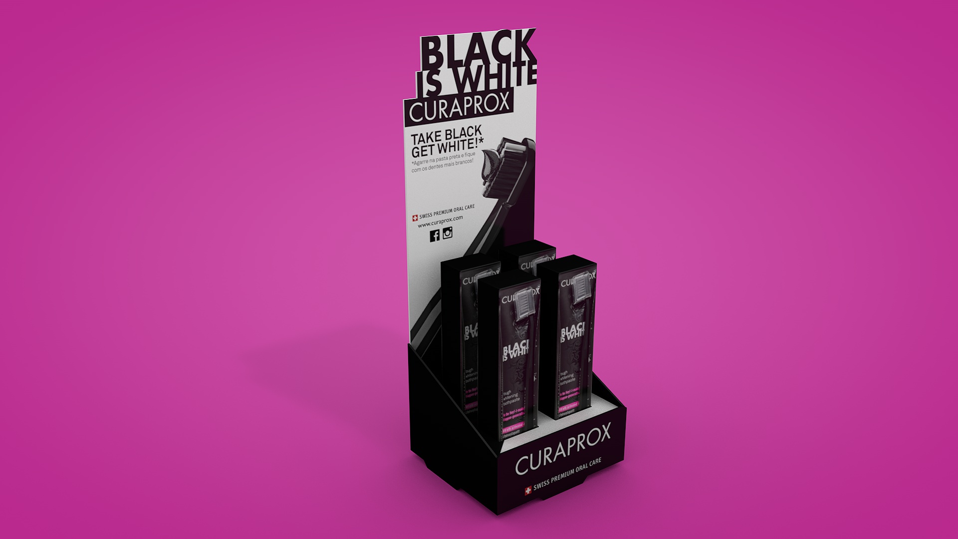 Desenvolvimento 3D e conceção estrutural dos expositores da marca Curaprox para o projeto Product Displays 2020.
