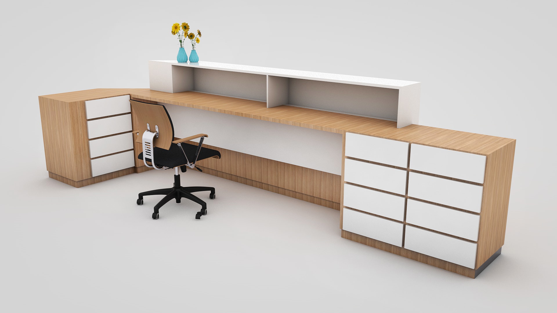 Desenvolvi a idealização do ambiente, a modelação 3D, a construção das duas versões de balcão administrativo e toda a pós-produção das imagens para apresentação ao cliente. A proposta combinou madeira, elementos verdes e uma nova abordagem de iluminação, criando uma receção mais acolhedora, contemporânea e alinhada com a renovação da marca.