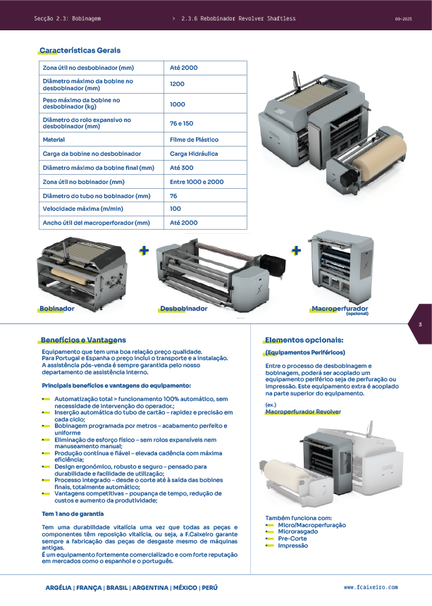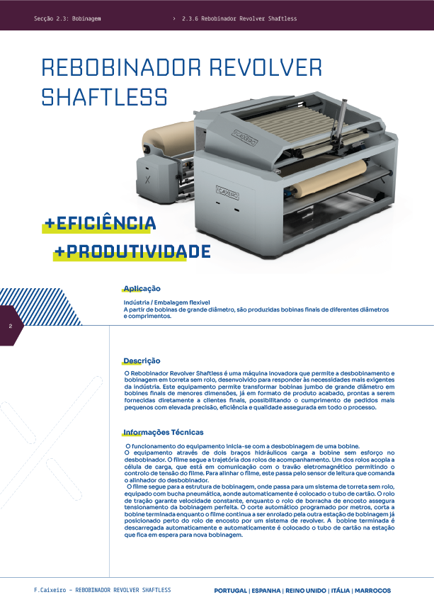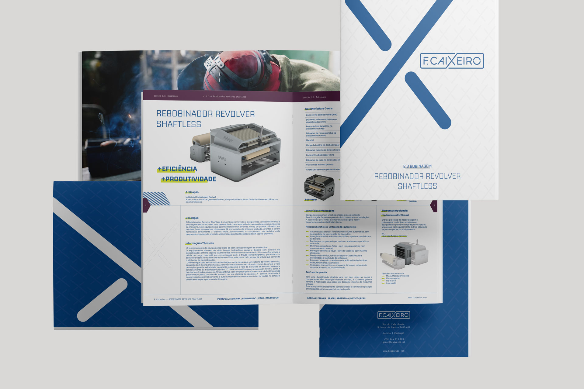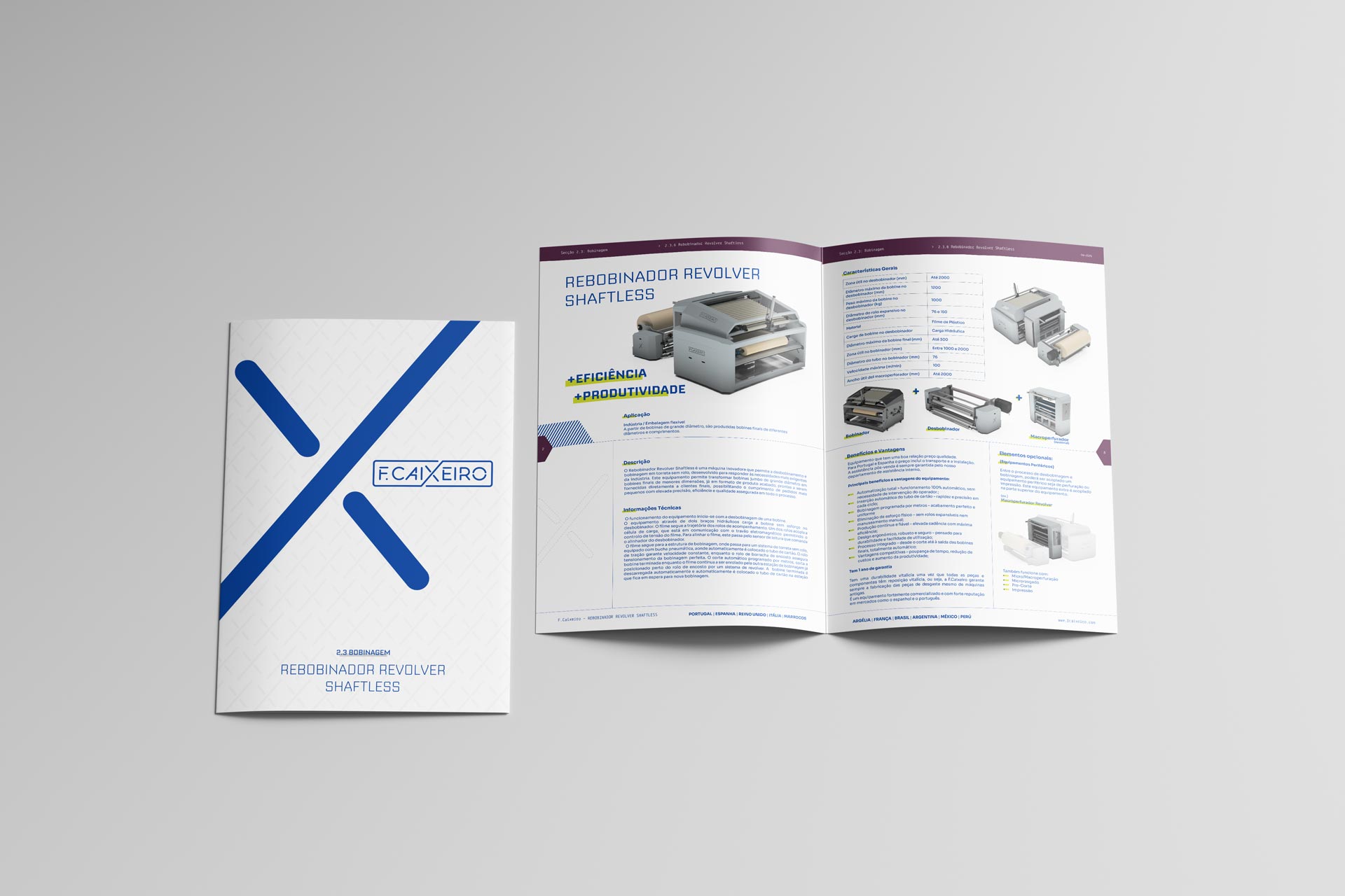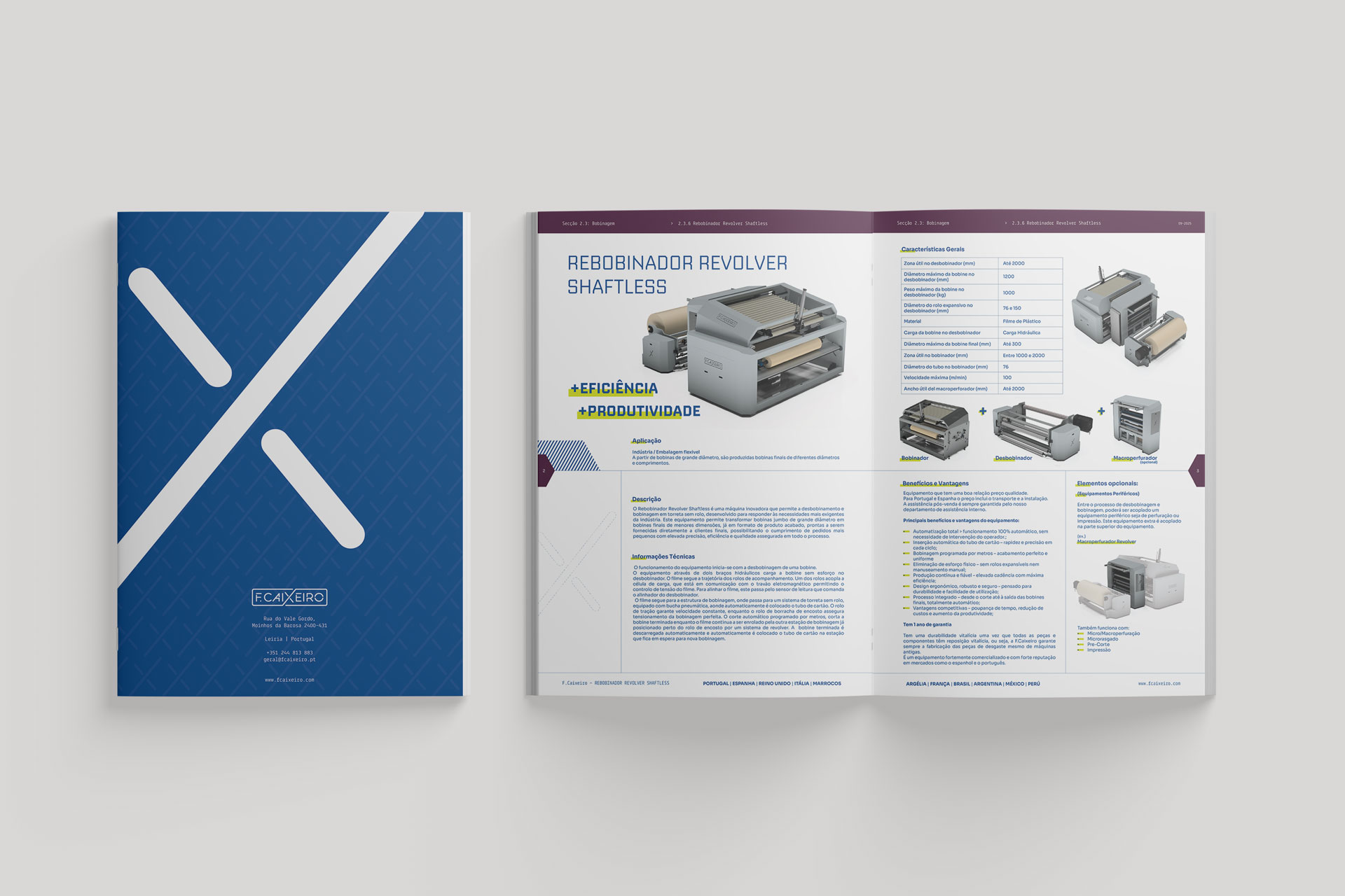 Desenvolvimento editorial e gráfico do catálogo de lançamento de uma nova máquina da F. Caixeiro Lda.